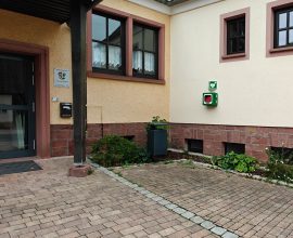 Seitlich am Eingang des HDB wurde durch den Markt Elsenfeld, angeregt durch die Eichelsbacher Ortvereine ein öffentlich zugänglicher Defibrillator installiert.
